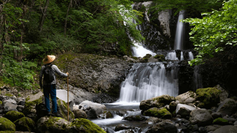 This is a waterfall with a 15m head located along the Yuki Birin Promenade. From the "Hyakkendaki Iriguchi Bus Stop", walk along the promenade about 300m to arrive at the falls. With the clear stream flowing over the moss-covered rocks, the beautiful primitive forest, and the sunlight through the trees, the scenery is truly fantastic. Soaking your tired feet in the clear stream while taking a rest here is highly recommended.
