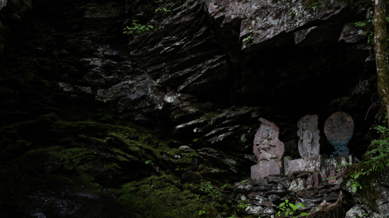 Amidst the streams and forests are numerous stone Buddhas and shrines so in harmony with nature that one could easily overlook them. Some are covered in moss. Others lie hidden behind the roots of trees or tangled in wildflowers. These artifacts serve as evidence of faith that someone, at some point in time, intentionally created. Man-made objects that became as one with nature over the centuries. To think that every single one of these objects has its own unique history adds an exhilarating air of mystery to the journey.