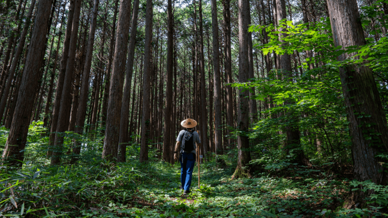 Starting at the "Gyoninbashi Pedestrian Bridge" in Kiso, the old road with a total length of 26.8 km takes you along a sacred path to "Nakanoyu". Previously only accessible by those that had undergone rigorous training, Kakumei repaired the path in 1782, during the latter half of the Edo period, leading to the path becoming widely known to the general public. The writer, Sei Ouchi, walked along the beautiful ancient path full of history and sacredness with a mysterieous landscape.